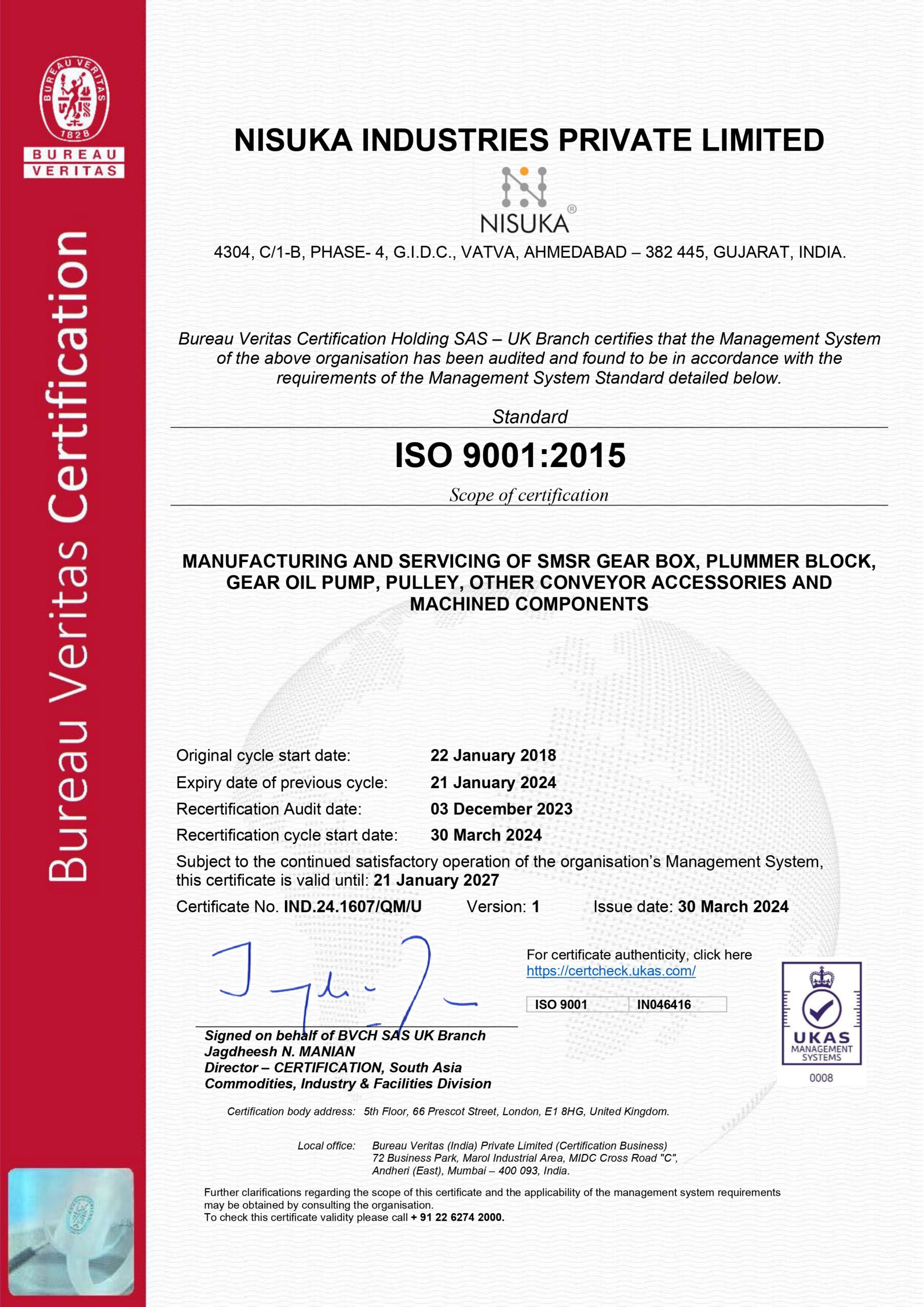 Nisuka is the Market initiator in this special & Unique design of SMSR Gearbox and Plummer Block which are a Patented product. Established in 1994 with an area of 15,200 sq. ft. We are an ISO 9001:2015 certified Company with dedicated team of over 30 years Experienced with professionally Managed Organization. managing the Designing, Procurement, assembling, testing, manufacturing and supply department. we use of the most advanced technology that enables us to provide best quality product with the international standard.